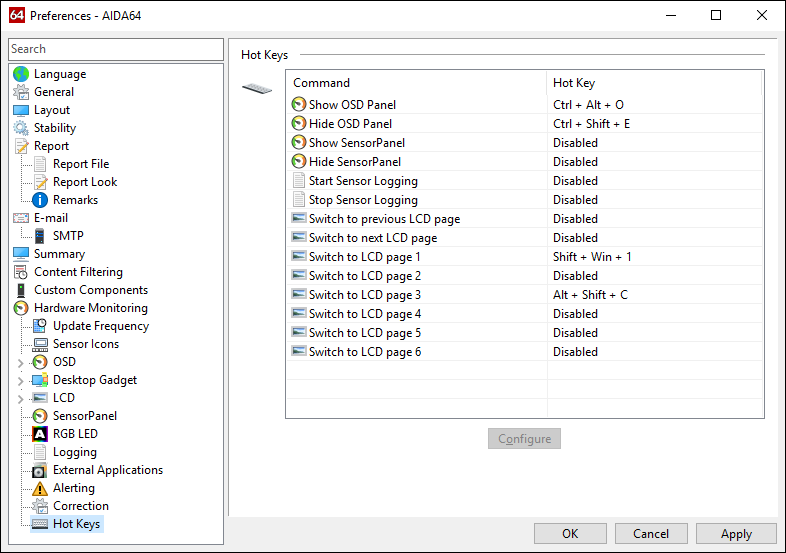 AIDA64 now allows users to define global hotkeys with which they can enable or disable the AIDA64 hardware monitoring panels or switch between multiple hardware information pages on external displays, even when AIDA64 is running in the background. Using these customized key combinations, PC enthusiasts can also start and stop saving temperature, voltage and power measurements as well as fan RPM readouts to a CSV or HTML log file.
