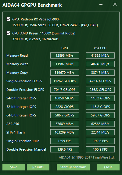 Multi-threaded OpenCL GPGPU benchmarks, graphics processor, OpenGL and GPGPU details, temperature and cooling fan monitoring for the latest GPUs: AMD Radeon Pro WX 9100, Radeon RX Vega 56, Radeon RX Vega 64, Radeon Vega Frontier Edition; nVIDIA GeForce GTX 1070 Ti, GeForce MX110, GeForce MX130, P102-100, P104-100, P104-101, P106-090, P106-100, Quadro P5200. Preliminary support for nVIDIA Tesla V100 Series. Vulkan graphics accelerator diagnostics for AMD, Intel and nVIDIA graphics accelerators. Support for OpenGL 4.6 and WDDM 2.3. RAID member enumeration for Intel NVMe RAID arrays. Corsair Commander Pro and EVGA iCX sensor support.