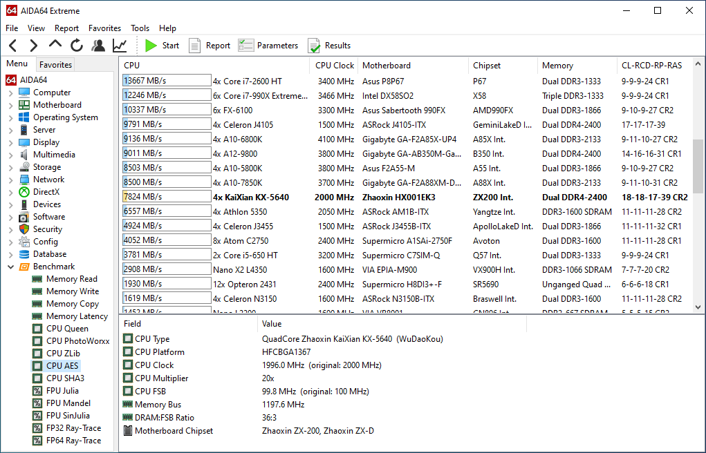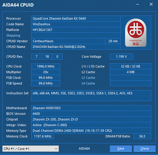 AIDA64 CPUID Panel, Cache & Memory Benchmark panel, GPGPU Benchmark panel, System Stability Test, and all cache, memory and processor benchmarks are fully optimized for Zhaoxin KaiXian KX-5000 Series and KaiXian ZX-C+ processors as well as for KaiSheng KH-20000 Series and KaiSheng ZX-C+ server processors, utilizing AVX, AES-NI and PadLock instructions. Detailed chipset information for Zhaoxin ZX-100, ZX-100S and ZX-200 south bridges, as well as for the integrated memory controllers of various Zhaoxin processors. PCI Express 4.0 controllers and devices support. Preliminary support for Zhaoxin KaiXian KX-6000 Series processors.