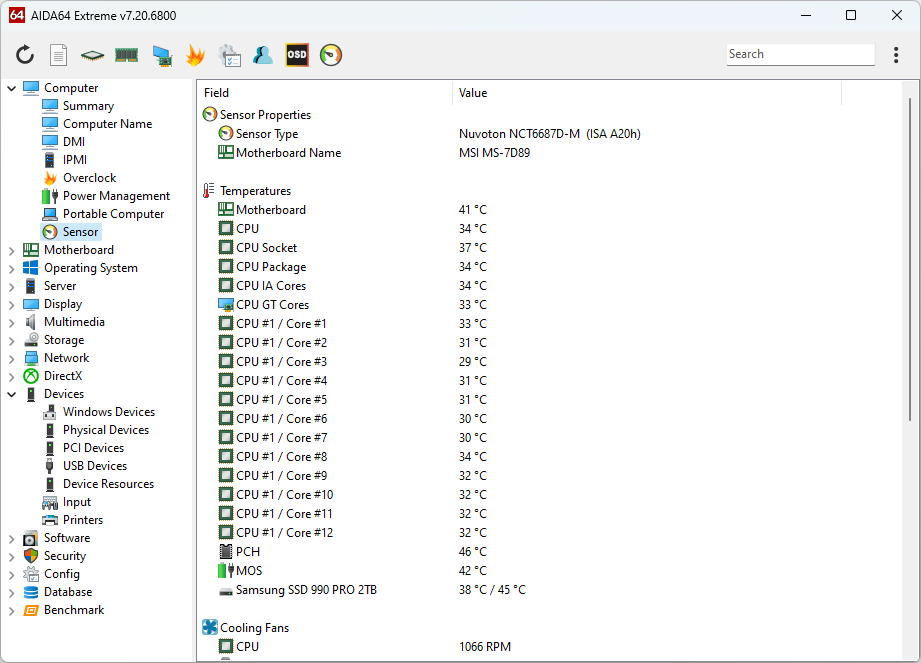 AIDA64 supports over 250 various sensor devices to measure temperatures, voltages, fan speeds, and power draw. Measured values can be displayed on System Tray icons, OSD panel, Desktop Gadget, Logitech G15/G19 Gaming Keyboard LCD, and Razer SwitchBlade LCD.