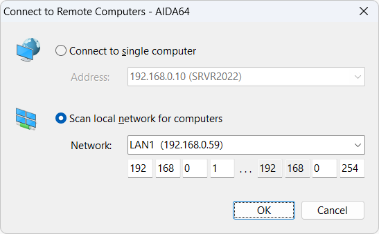 You can select one or more computers using an IP address or computer name. If multiple networks are in use, you can select the network name or specify an IP address range.