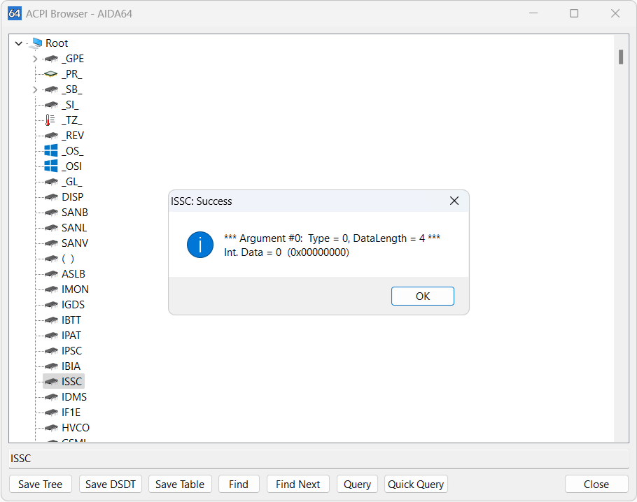 Additionally, AIDA64 allows you to search within the item tree and perform custom queries, providing flexibility in managing and analyzing ACPI data.